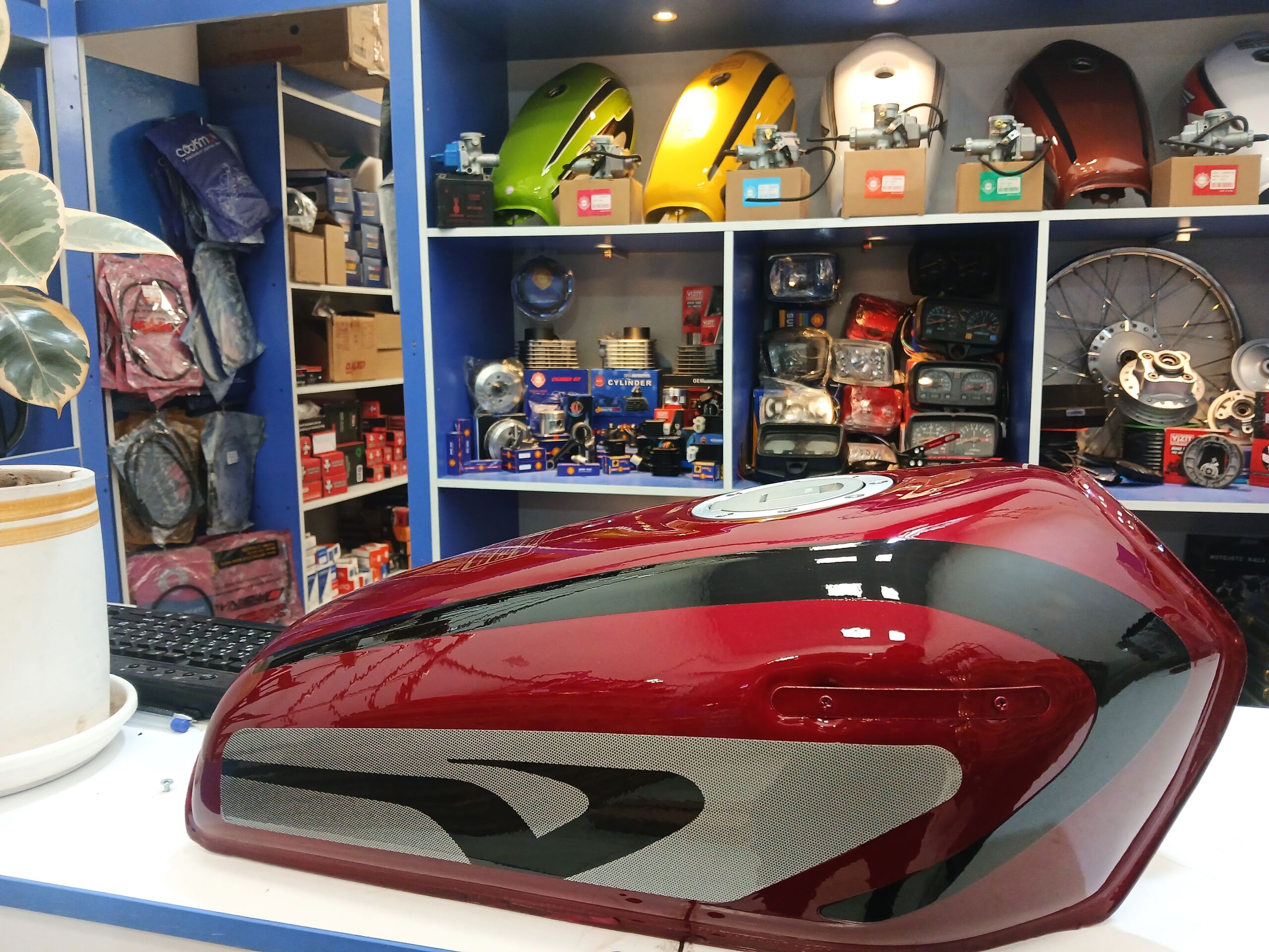 باک موتورسیکلت انژکتوری زرشکی کاستوم مشکی درب پالسی 4 پیچ
